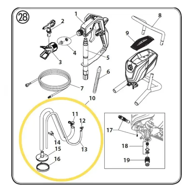 Consiste en la manguera de aspiración y el tubo de retorno con todas piezas en la ilustración dentro de la Figura 10 ilustrada en las imágenes.